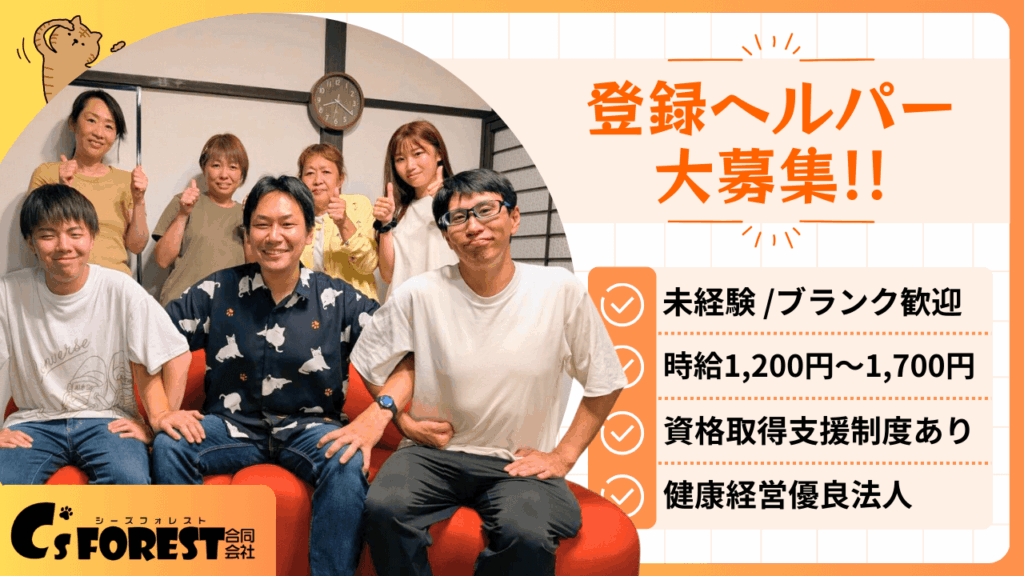 登録ヘルパー大募集!!|へるぷ処 ねこの樹|社会保険完備|賞与あり|健康経営優良法人