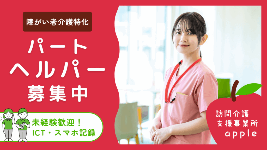 訪問介護支援事業所appleは、2025年2月にオープンした、障がい福祉サービス(居宅介護・重度訪問介護・移動支援)に特化した事業所です。※介護保険の訪問介護は行っておりません。